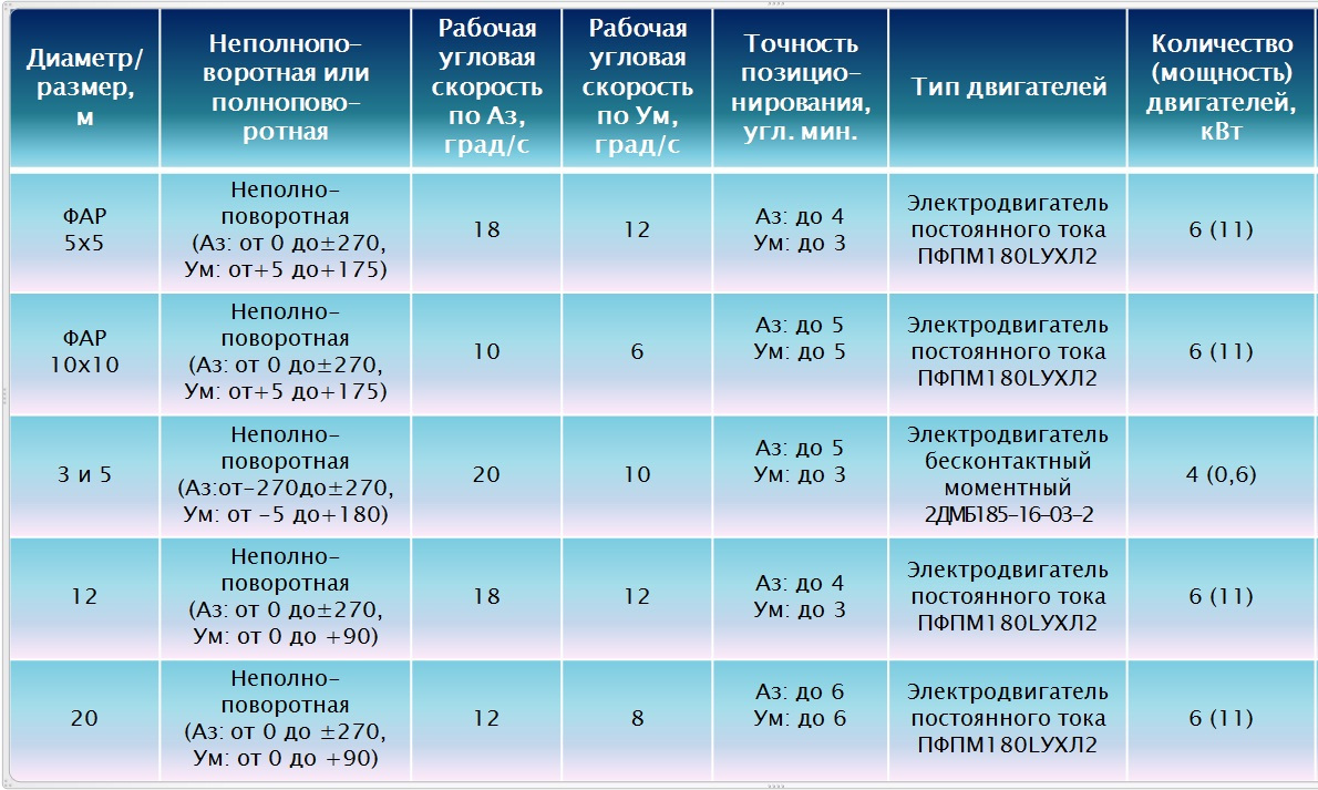 Опыт предприятия позволяет изготавливать следящие системы управления электроприводами антенных комплексов для разных мощностей применяемых электродвигателей. При необходимости модернизации существующих систем разработка выполняется в максимально короткие сроки за счет наработанных технических решений.